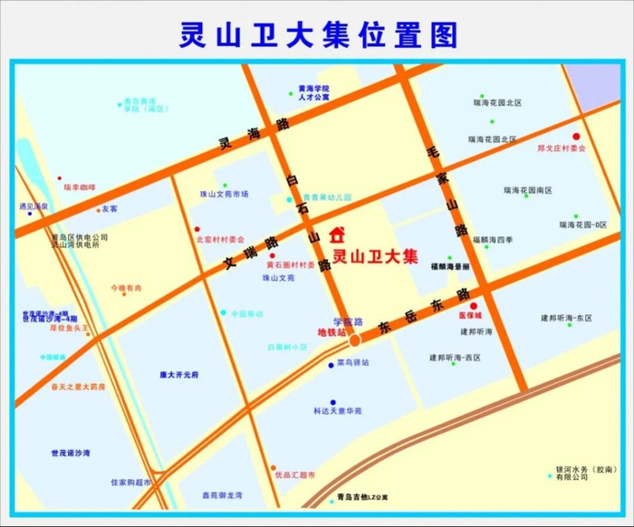靈山衛(wèi)大集位于文瑞路南側(cè)、白石山路東側(cè),龍湖紫宸小區(qū)西側(cè)。