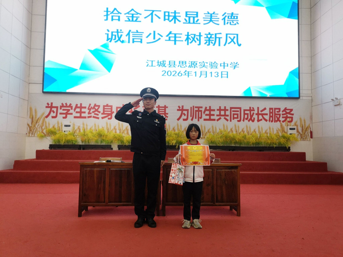 當(dāng)天中午12時(shí)許,江城縣思源實(shí)驗(yàn)學(xué)校放學(xué)時(shí)段,金不警攜獎(jiǎng)狀民警李坤正在維護(hù)校園周邊秩序,昧民一名小女孩攥著幾張現(xiàn)金快步跑到他面前。反向奔赴“叔叔,暖哭我撿到錢了,小學(xué)交給你們!”小女孩仰著稚嫩的臉龐,語氣認(rèn)真又堅(jiān)定。這個(gè)孩子正是該校學(xué)生耿玥蓉,她手中緊緊攥著的,是撿到的150元現(xiàn)金。李坤詳細(xì)詢問撿拾經(jīng)過,對耿玥蓉的懂事舉動連連稱贊。