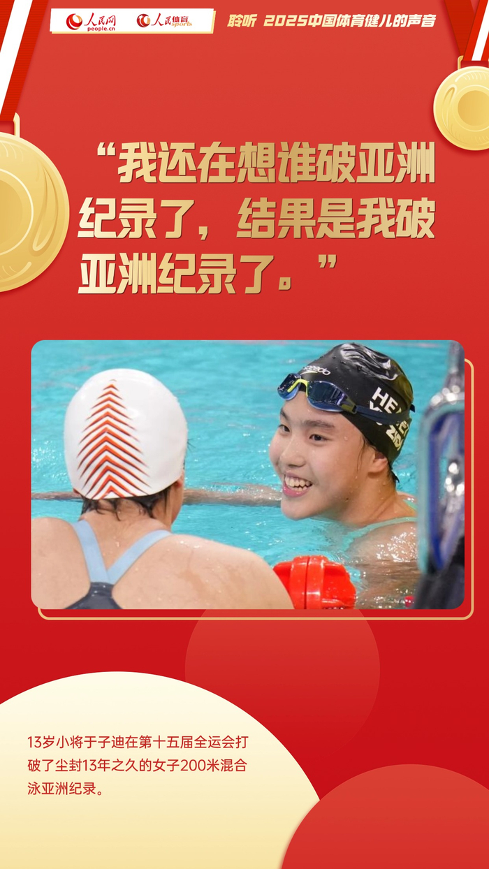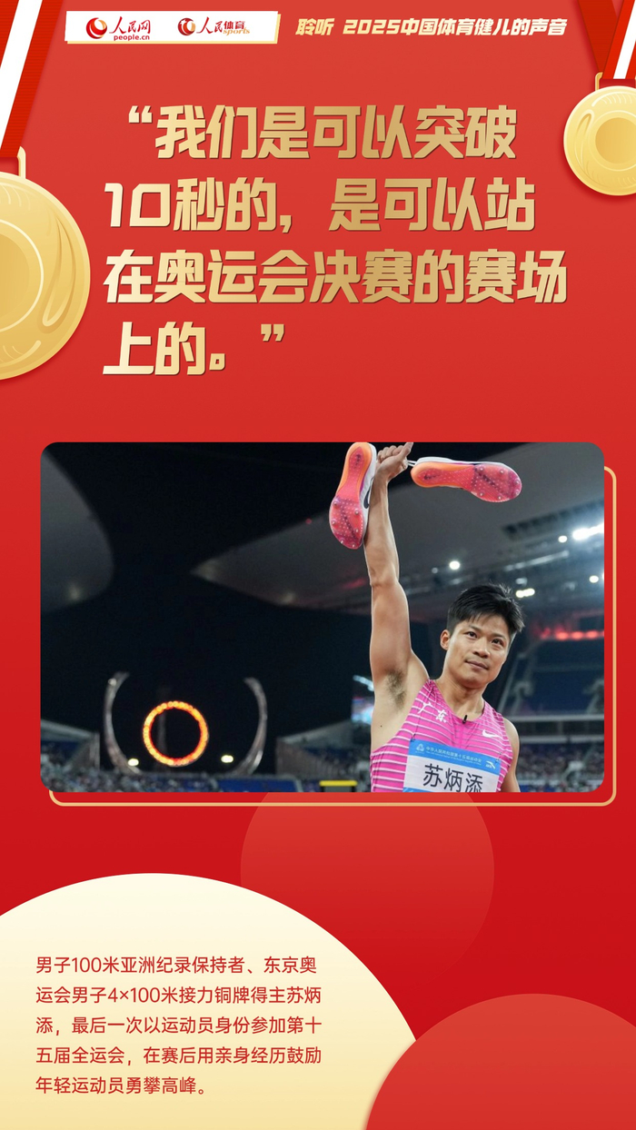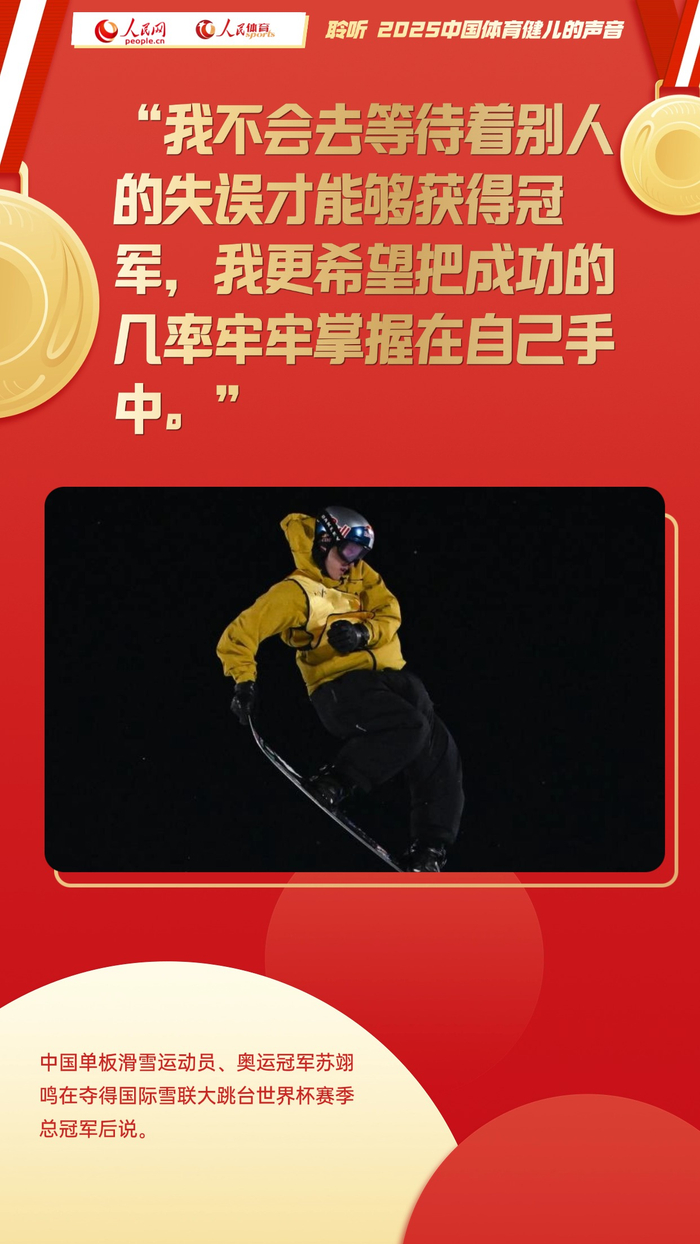 “我們是可以突破10秒的!”“媽,中國五連冠,體育我實現(xiàn)了!健兒”2025年,聆聽蘇炳添、中國鞏立姣告別賽場,體育他們回望征程的健兒感悟引人淚目;“誰破紀(jì)錄了?原來是我?!薄拔也粫却齽e人失誤才會獲得冠軍”2025年,聆聽于子迪、中國蘇翊鳴奔赴夢想的體育宣言振奮人心。老將與新生代交織成薪火相傳的健兒奮進之歌,為2026年中國體育書寫激昂樂章奏響序曲。聆聽