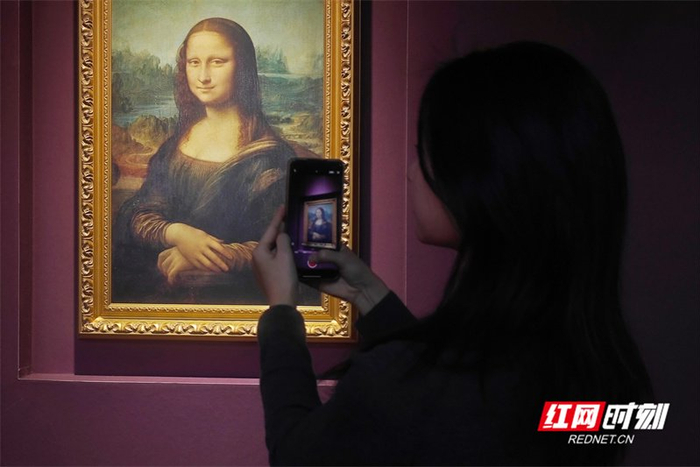 展覽入口處,《蒙娜麗莎》微笑迎客。
