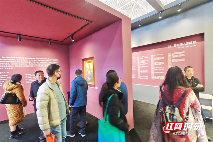步入展區(qū),術(shù)出仿佛走進(jìn)一座達(dá)·芬奇藝術(shù)館,大家或翻閱新書,或觀賞名畫,或打卡拍照,現(xiàn)場人氣火爆。展覽期間,主辦方贈送的“蒙娜麗莎”透卡冰箱貼,被入場觀眾一搶而空。