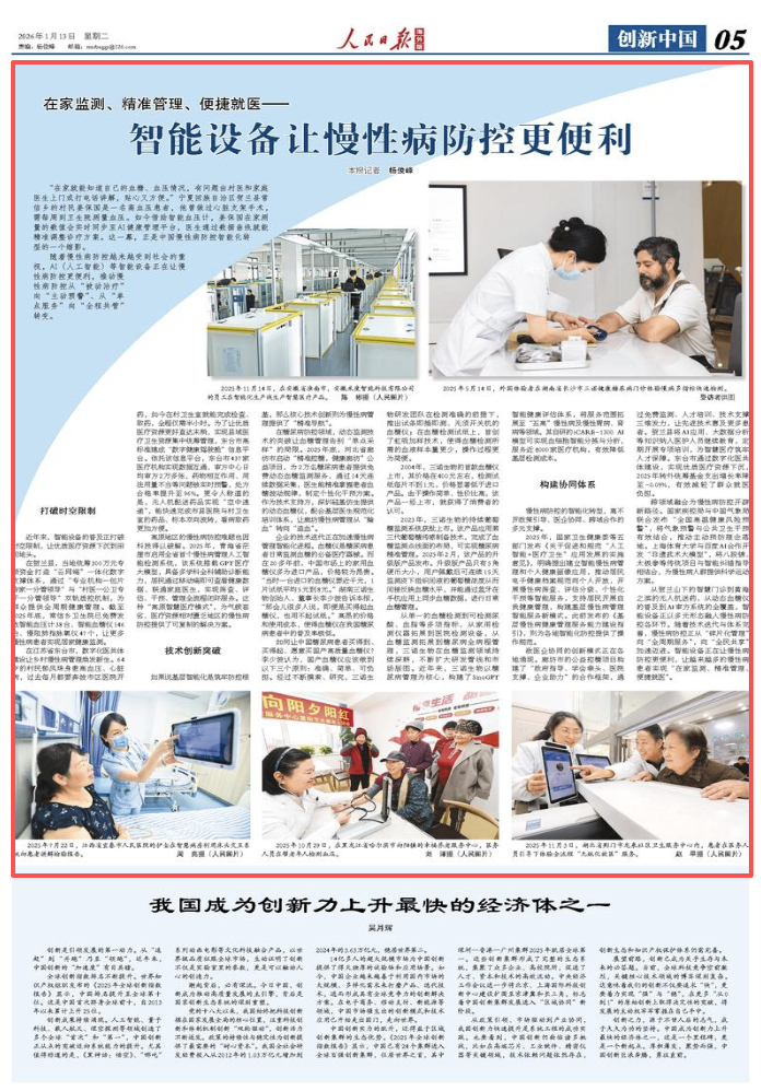 從賀蘭山下的智慧門診到黃海之濱的無人機送藥,從動態(tài)血糖儀的普及到AI審方系統(tǒng)的全覆蓋,智能設(shè)備正以多元形態(tài)融入慢性病防控各環(huán)節(jié)。隨著技術(shù)迭代與體系完善,慢性病防控正從“碎片化管理”向“全周期服務(wù)”,向“全民共享”加速邁進。智能設(shè)備正在讓慢性病防控更便利,讓越來越多的慢性病患者實現(xiàn)“在家監(jiān)測、精準管理、便捷就醫(yī)”。(本報記者 楊俊峰)