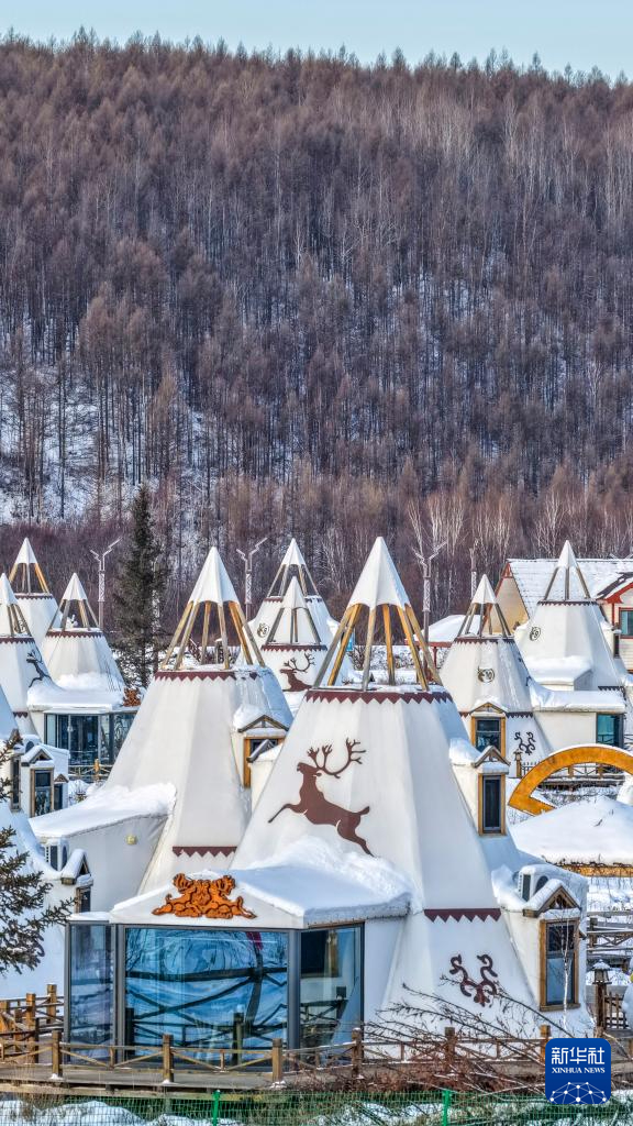 ??這是1月15日在根河市敖魯古雅鄂溫克民族鄉(xiāng)拍攝的鄂溫克族傳統(tǒng)民居撮羅子(無人機(jī)照片)。