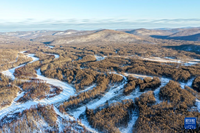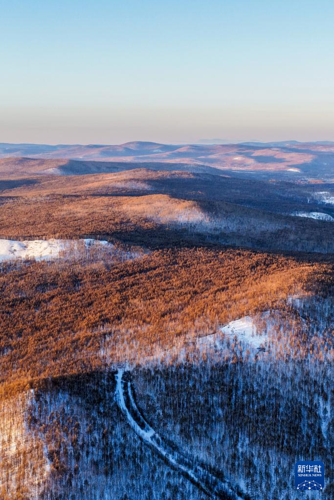 ??這是1月14日拍攝的根河市城郊的森林(無人機(jī)照片)。