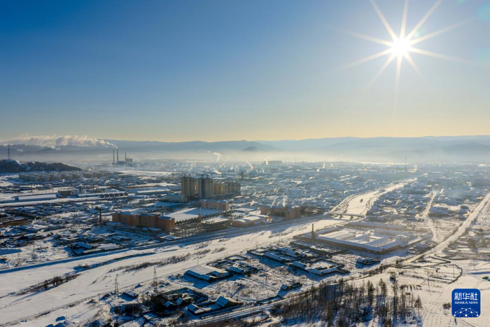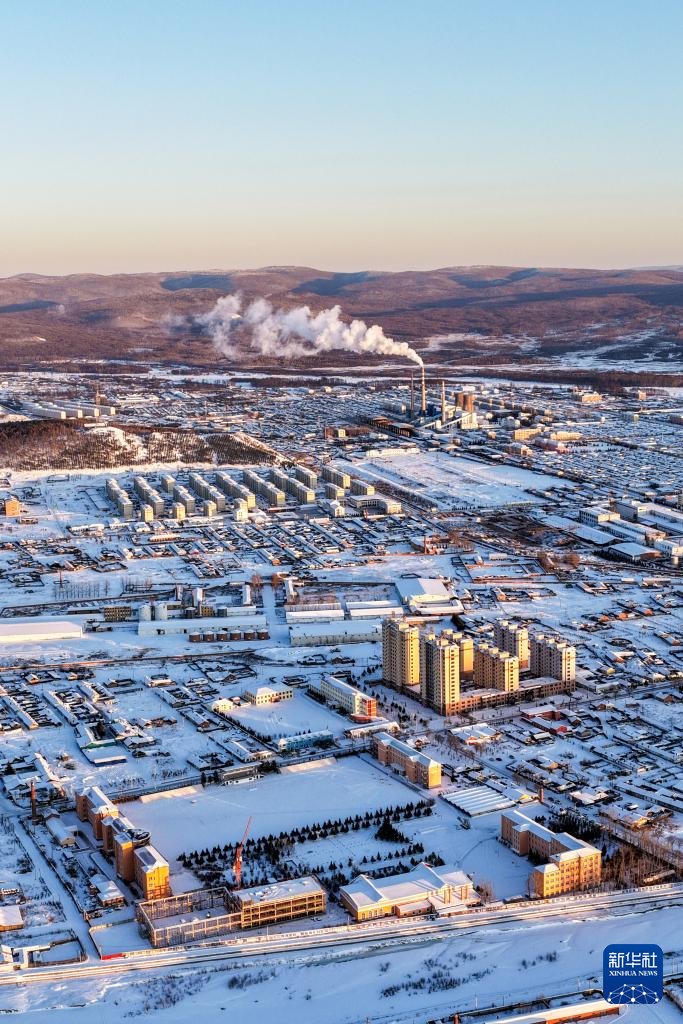 ??這是1月14日拍攝的根河市城區(qū)景色(無人機(jī)照片)。