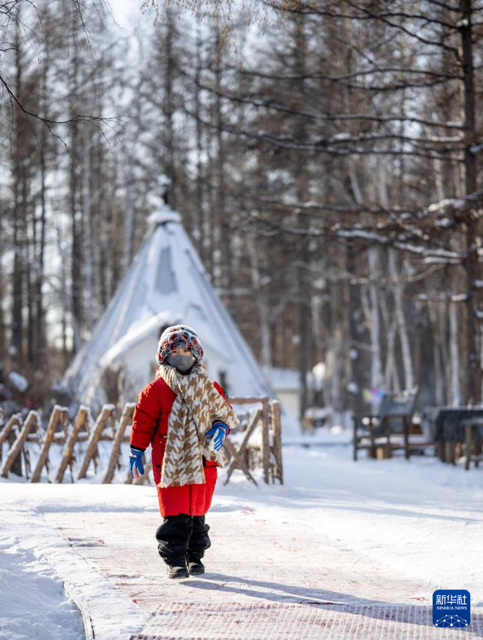 ??1月15日,一名小游客在根河市敖魯古雅鄂溫克民族鄉(xiāng)游玩。