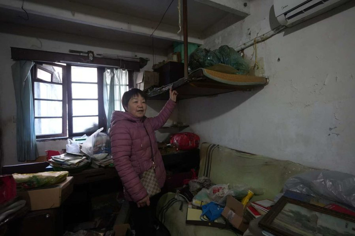 2016年丈夫去世后,施利玉獨(dú)自生活,與另外4戶(hù)人家合用衛(wèi)生間和廚房。為了生活便利,她將小天井改造成簡(jiǎn)易淋浴間,甚至在床下放置了痰盂,每日清晨清理,“在這樣的房子里生活,沒(méi)什么幸福感?!?/p>