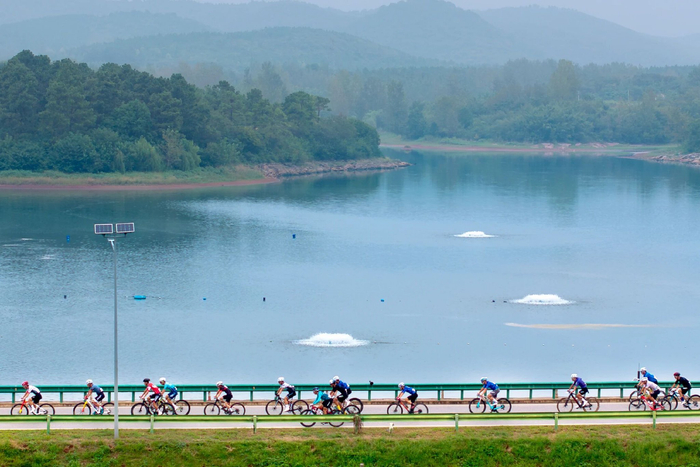 2025年9月14日,2025“中國皖美山水”騎行賽·全椒江淮分水嶺風(fēng)景道站暨“匯科杯”滁州市第三屆自行車公開賽的選手在江淮分水嶺全椒段騎行。計(jì)成軍攝