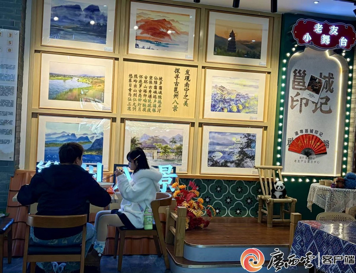 青磚黛瓦,馬頭墻翹角飛檐。三角梅從墻角蜿蜒而出,潑灑出一片紫紅。墻上懸著的白底條幅上,墨書(shū)繁體“南寧”二字,古樸淡雅。年輕女孩閑坐臺(tái)階上,舉起手機(jī)自拍,身影嵌入這幅意境唯美的嶺南畫(huà)卷。
