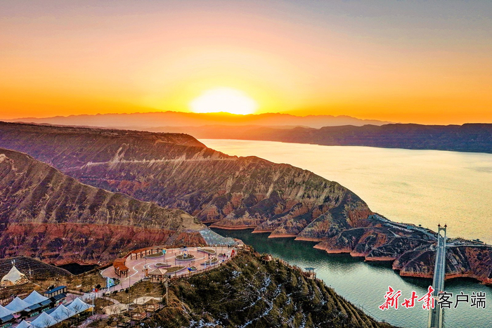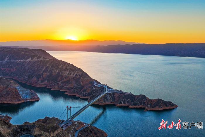 1月9日傍晚,落日余暉傾瀉在劉家峽水庫寬闊的區(qū)落水面上,將碧波染成流動的日熔暖金色,與暮色中的金映丹霞、蜿蜒起伏的丹霞山巒相映成趣,營造出寧靜而壯闊的峽庫意境。