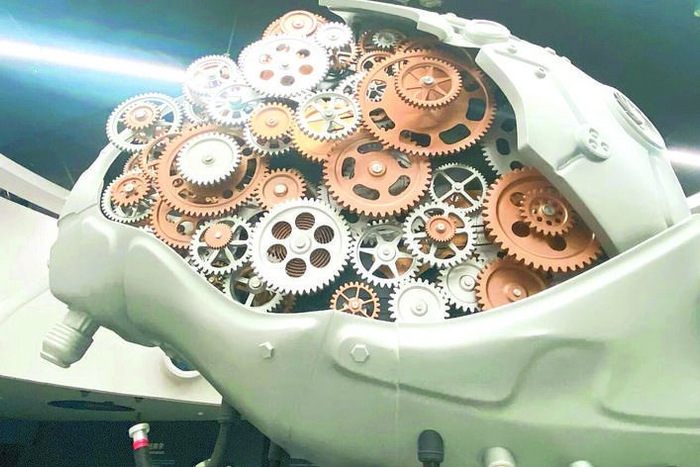 這顆4.5米高的“機械大腦”的外殼是一整塊:長、寬、高都超過4.5米,體積超過30立方米。如果按傳統(tǒng)方式制作,光外殼重量就可能超過3噸,再加上里面的金屬骨架和齒輪系統(tǒng),整體重量將遠遠超過深圳科技館中庭樓板的承重上限。