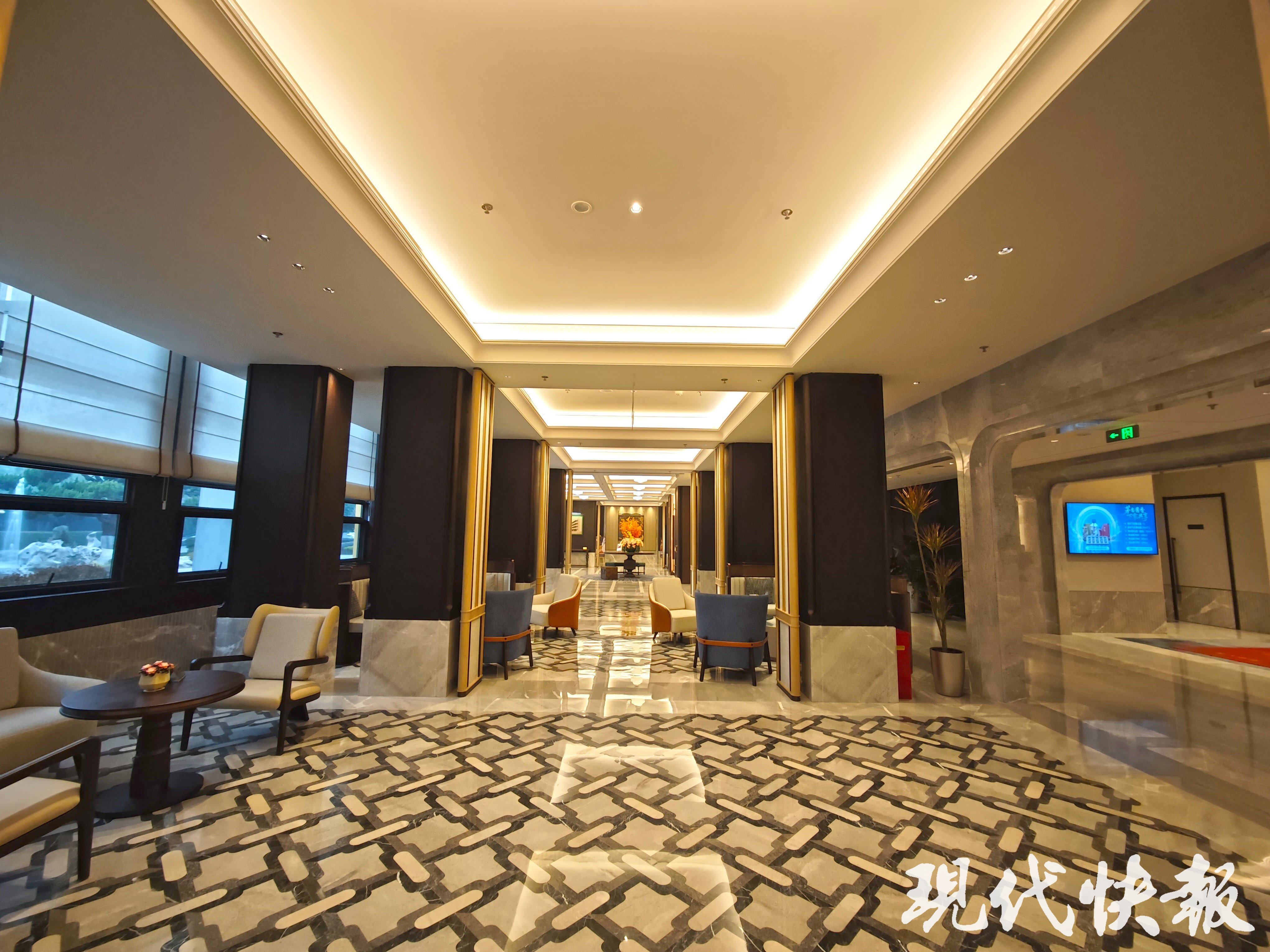 不久前,修繕加固后的A樓正式歸來。站在北京西路,沿著飯店主干道走,就可以看到噴池后黃紅相間、色彩大膽艷麗的大樓。