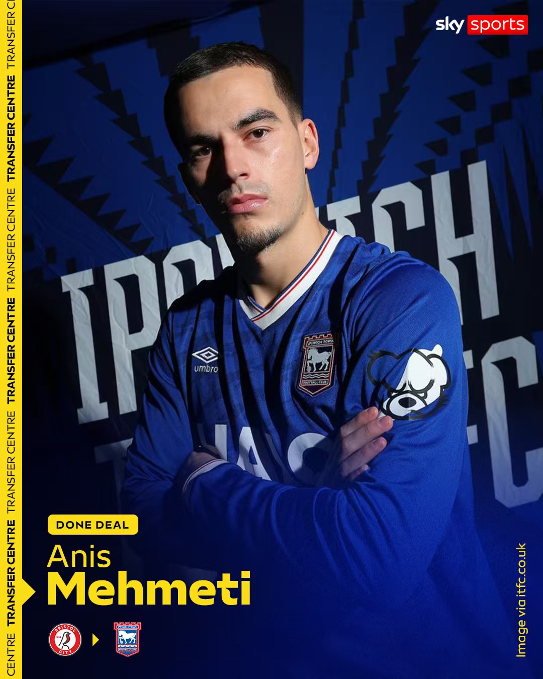 [流言板]伊普斯維奇簽下布里斯托爾城梅赫梅蒂,雙方簽約至2029年