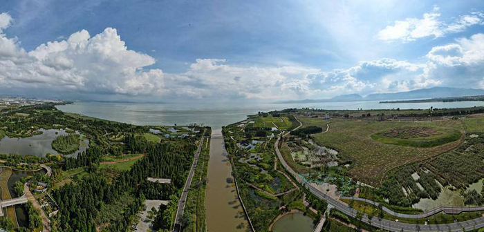 如今,一條平均寬約200米、面積達(dá)6.29萬畝的閉合生態(tài)帶環(huán)繞滇池,宛如一條“翡翠項(xiàng)鏈”鑲嵌湖岸。這條生態(tài)帶由58塊、總面積4.57萬畝的湖濱濕地組成。
