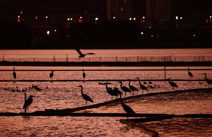 每天晚上開合浮橋水域棲息著許多鳥類。