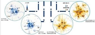 本次大數(shù)據(jù)評(píng)估搭建“長(zhǎng)時(shí)序、高精度、高動(dòng)態(tài)的多源大數(shù)據(jù)底座與時(shí)空耦合分析平臺(tái)”,整合手機(jī)信令、交通刷卡、興趣點(diǎn)、企業(yè)注冊(cè)等多源大數(shù)據(jù)——這些數(shù)據(jù)時(shí)間跨度更長(zhǎng)、時(shí)空精度更高,經(jīng)嚴(yán)格匿名化處理,形成穩(wěn)定維護(hù)、及時(shí)更新的基礎(chǔ)數(shù)據(jù)底座。在此之上,通過(guò)設(shè)置城市監(jiān)測(cè)評(píng)估指標(biāo),利用智能模型識(shí)別,精準(zhǔn)發(fā)現(xiàn)城市變化,進(jìn)而分析發(fā)展趨勢(shì)。