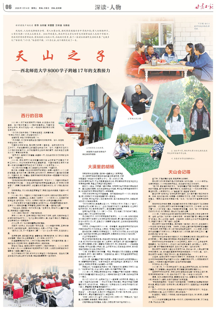 天山之子——甘肅8000學(xué)子跨越17年的天山支教接力 2026年01月14日 08:00 作者 avatar新甘肅客戶(hù)端 甘肅云新媒體有限責(zé)任公司 縮小字體 放大字體 收藏 微博 微信 分享 0 騰訊QQ QQ空間