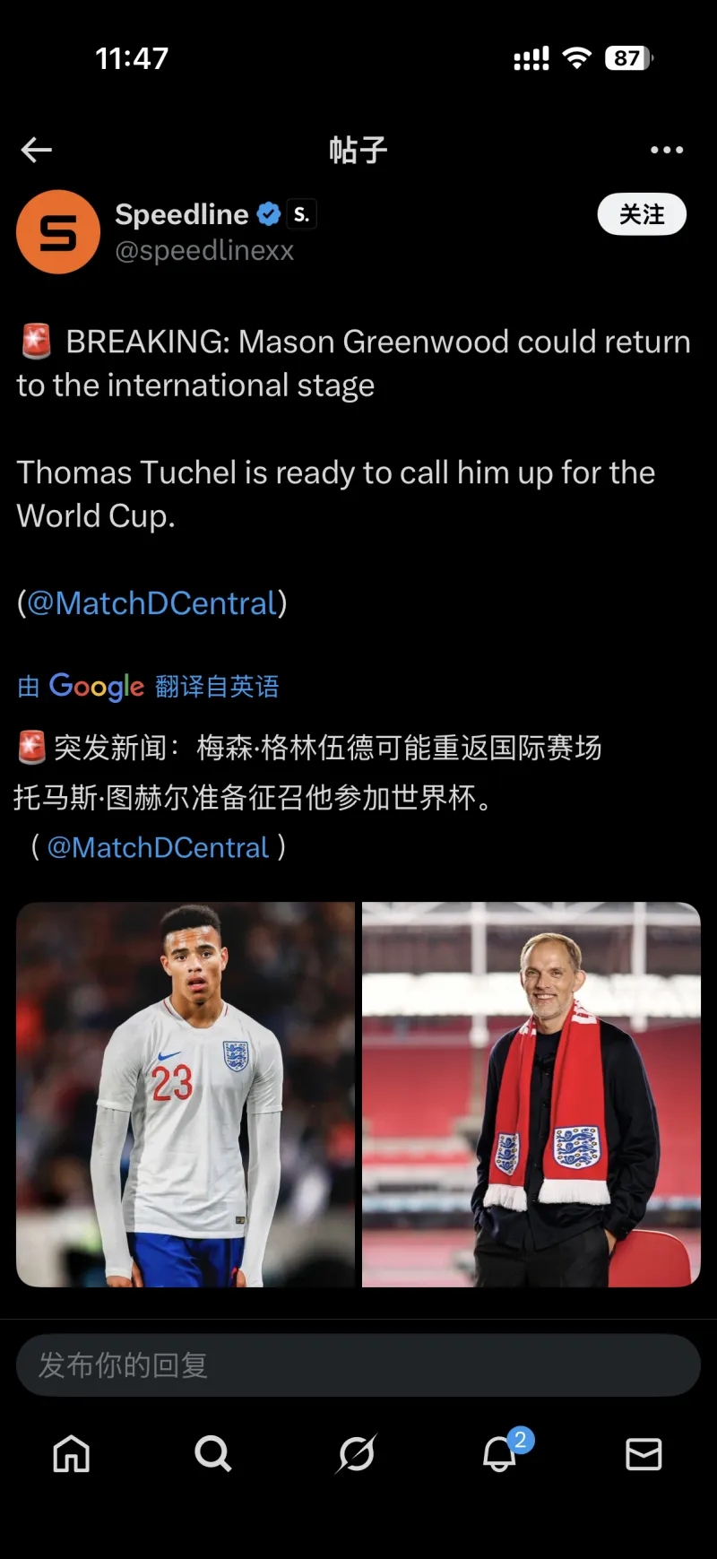 突發(fā)消息!消息外網(wǎng)流言四起:圖赫爾準(zhǔn)備征召青木格林伍德參加世界杯!外網(wǎng)伍德要重回英格蘭了嗎由虎撲JR1095938603 發(fā)表在曼聯(lián)專區(qū) https://bbs.hupu.com/manutd