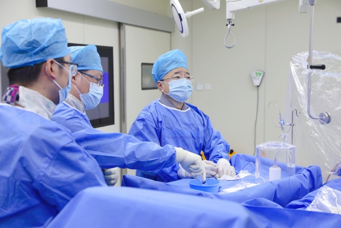 與此同時,高精尖醫(yī)療技術也在江蘇落地生根、走向常態(tài)。2023年3月24日,60歲的李阿姨在東南大學附屬中大醫(yī)院接受了一場特殊手術——她因結直腸癌肝轉移,由滕皋軍院士帶領的介入與血管外科團隊,為其施行了全球首例釔90炭微球治療。手術中,數(shù)百萬顆載有同位素釔90的微球,如精準投放的“核彈”,經(jīng)肝動脈注入腫瘤內部,局部釋放高劑量輻射,高效殺滅癌細胞。整個過程僅耗時40多分鐘,十分順利。